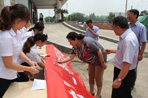 ????? 7月19日中午11:30-12:20,阳逻分公司在食堂门口组织了一场主题为“开源节流——我们在行动”的大型签名活动,两百多名员工踊跃参加签名活动,以自己的实际行动积极响应公司号召。公司许开华董事长、王敏常务副总、阳逻分公司杨正新总经理、武汉公司王健总经理等高层领导也亲临现场签名;许开华董事长高度肯定了阳逻分公司开展开源节流签名活动的创新意义,并提倡在全格林美公司推广,促进各公司之间开源节流工作的交流和学习。