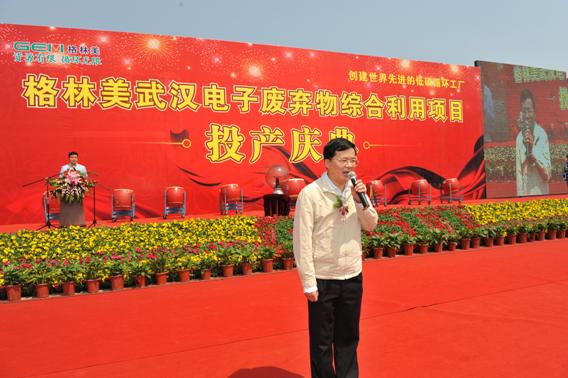 图14 湖北省人民政府副省长郭生练致辞并宣布格林美武汉电子废弃物综合利用项目正式投产