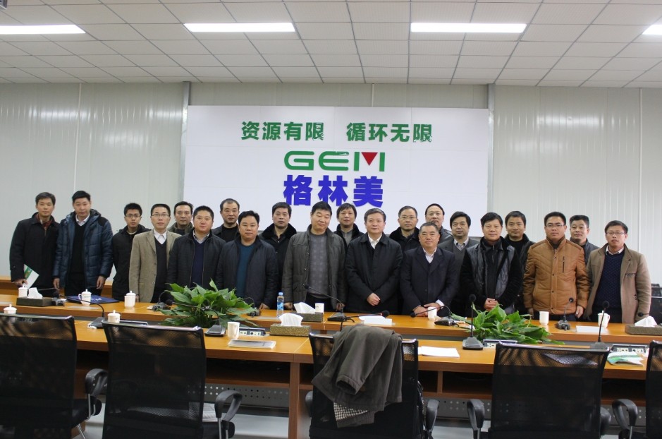 图2.丰城市市长金三元(前排右五)、格林美公司董事长许开华(前排右四)等领导一行合影留念