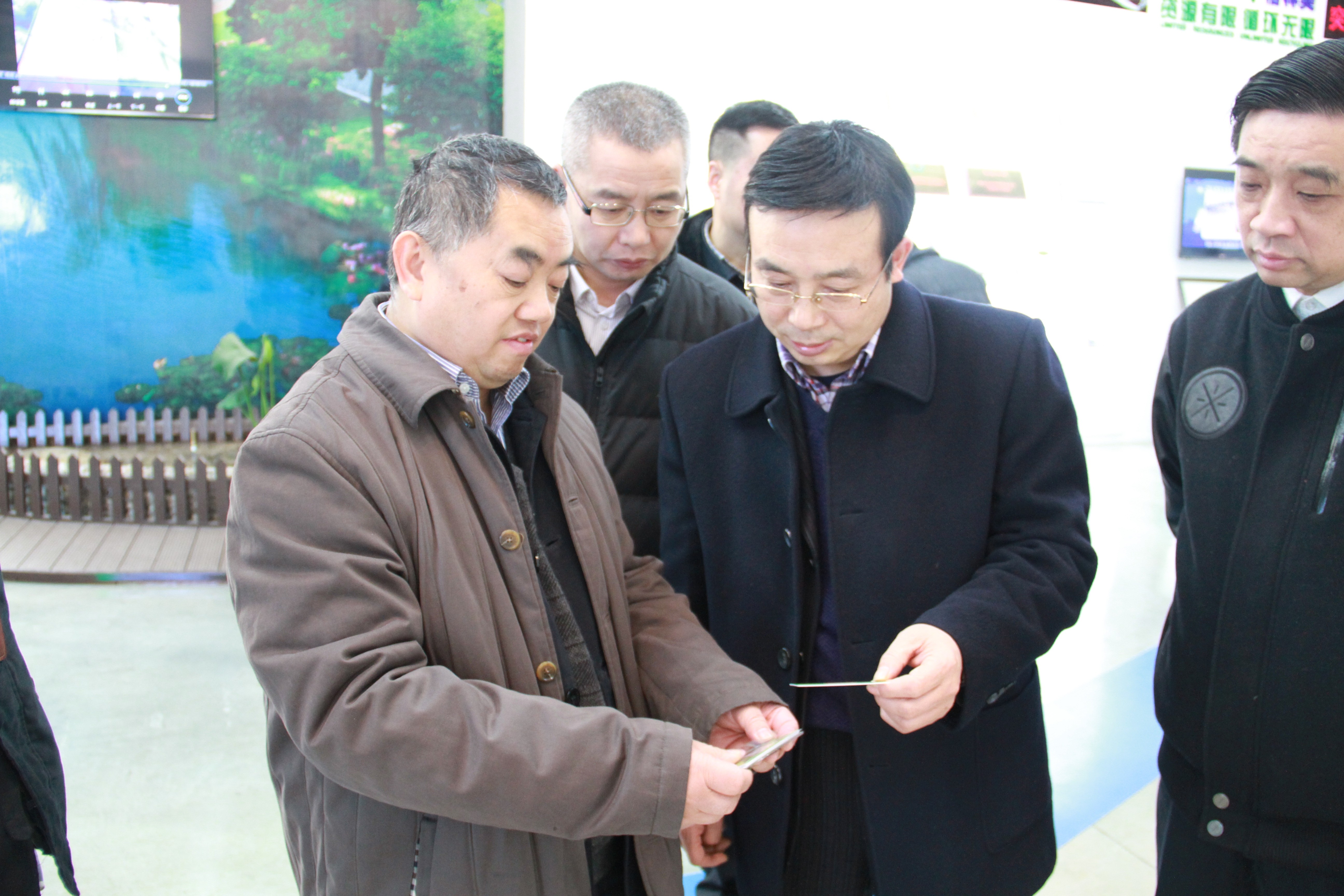 图二 许开华董事长(左一)向张尚贵副市长(右二)一行介绍美丽中国卡