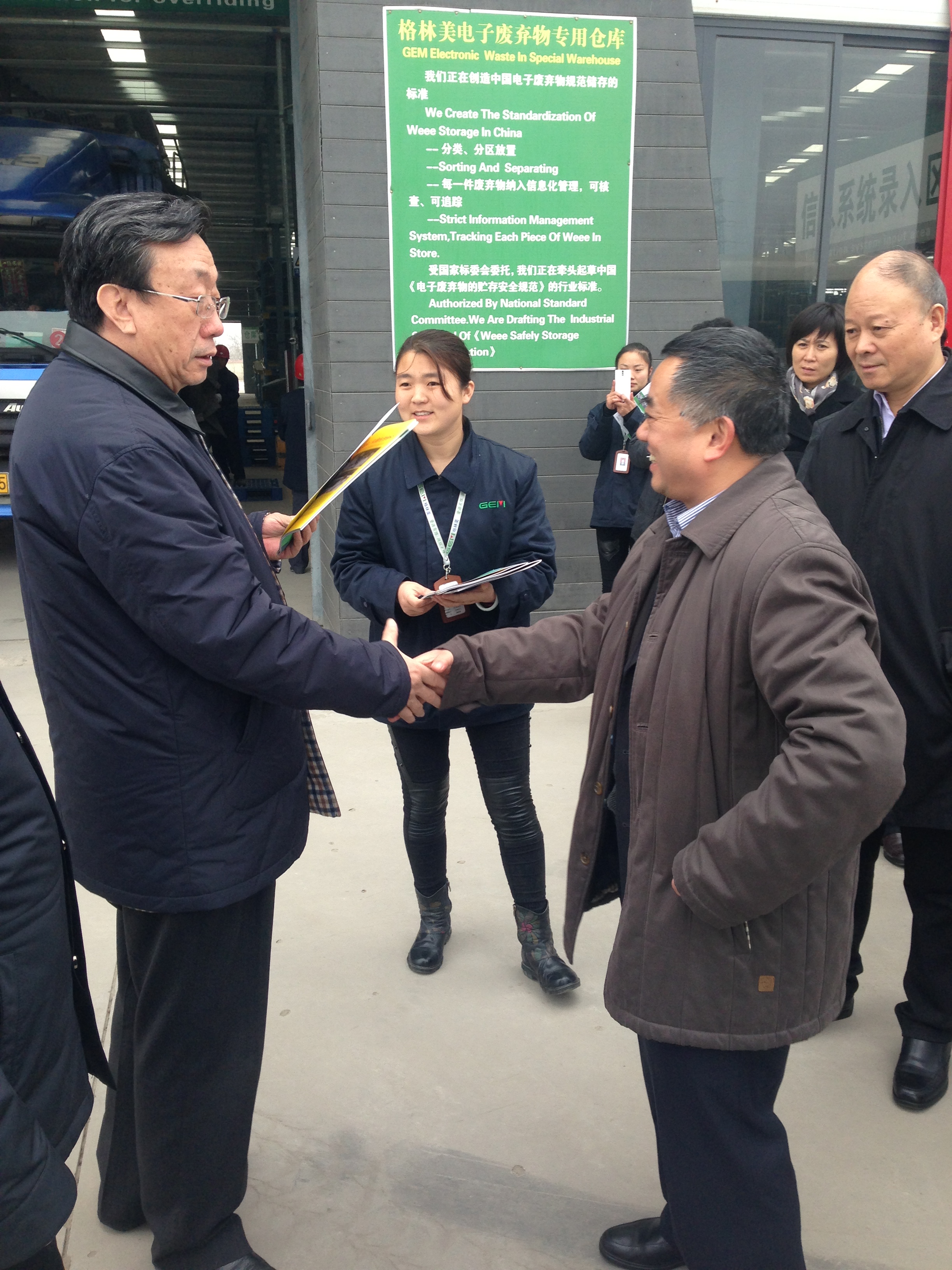 ??????? 2月26日上午,中共河南省委书记郭庚茂在河南省政府有关部门领导以及? 兰考县政府有关领导陪同下,考察了格林美河南公司电子废弃物拆解车间。公司董事长许开华向郭书记一行汇报了格林美在全国的循环产业发展与布局情况,汇报了格林美河南公司的发展规划与建设近况,陪同郭书记参观了格林美河南公司电子废弃物处理车间。许开华董事长代表公司感谢河南省委省政府对格林美在河南发展循环产业所提供的支持。郭书记表示,坚决支持格林美在河南发展城市矿山环保产业,走循环发展之路。郭书记指出,电子废弃物与报废汽车处理产业前景广阔,鼓励格林美把中原经济圈作为格林美循环产业的战略位置来大胆布局中原循环产业,郭书记表示,河南省委省政府愿意与格林美一起来研究如何推动格林美中原循环产业做强做大。