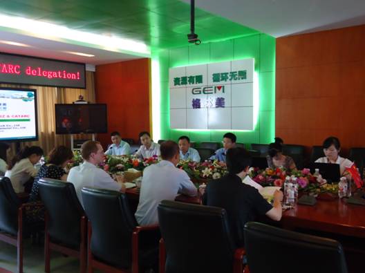 ??? 2012年6月12日,德国国际合作机构GIZ中德动力电池回收小组负责人及成员、中国汽车技术研究中心(CATARC)、大众汽车(中国)以及宝马(中国)的代表们莅临荆门格林美城市矿产资源循环产业园,考察了格林美在废旧电池的回收技术、循环化处理、环保处理等方面的科技创新成就以及在城市矿产资源循环产业的发展情况,公司总经理周继锋、研发部何显达经理、企业商务服务中心黄威主任等进行了热情的接待,并就电子废弃物处理与废旧电池循环化处理生产高技术产品进行了深入交流。