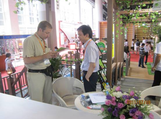 图三 客户在洽谈区内详细咨询公司塑木产品信息