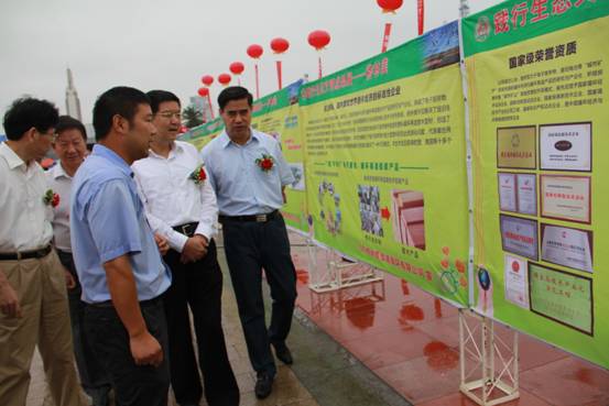 图二 孙刚副省长(中),邓兴明厅长(右一)参看格林美实践生态文明展