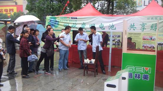 图四 宜春市民在咨询关于电子废弃物以及废旧电池的相关问题