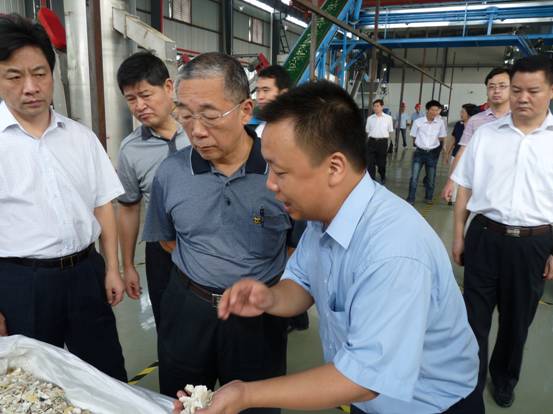 图一 周坚卫副主任(前排中)在常务副总周继峰(右一)的陪同下参观电子废弃物分厂现场
