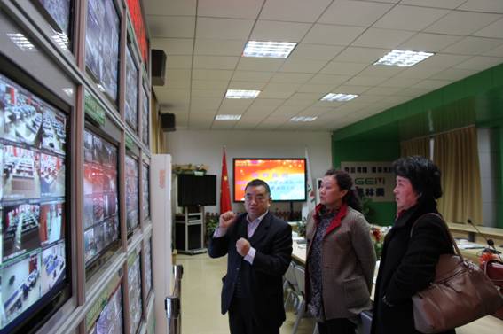 图1 董事许开华教授向刘艳荣巡视员(右一)介绍格林美视频监控系统