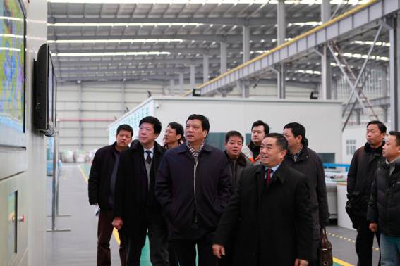 董事长许开华教授(右一)及市、区各部门领导的陪同下参观格林美武汉电子废弃物拆解车间