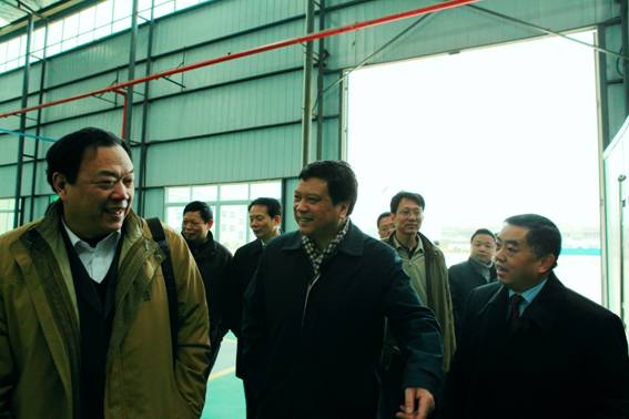 图四 武汉市委常委、市政府副市长岳勇(右二)在武汉市商务局孙朝忠副局长(右三)、格林美公司董事长