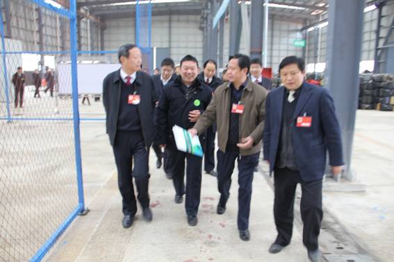 图一 江西省丰城市政协主席熊生根(左一)、丰城市常务副市长熊建清(右二)一行参观江西格林美