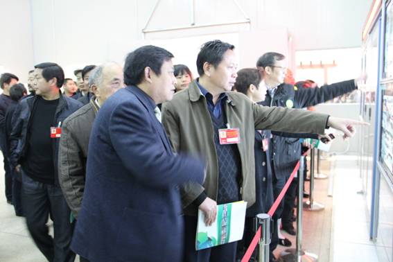 图二 江西省丰城市政协主席熊生根、丰城市常务副市长熊建清(左二)一行参观格林美在线监控信息中心