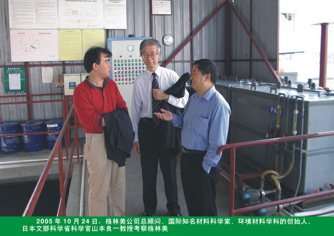2005年10月24日下午,格林美公司总顾问、国际知名材料科学家、环境材料学科的创始人、日本文部科学省科学官山本良一教授考察了公司。山本良一教授在公司董事长许开华教授、安本教授和钟积龙教授的陪同下认真考察了公司循环技术分厂、公共技术检测中心,听取了公司董事长许开华教授关于公司在资源循环方面的发展情况汇报,交流了世界资源循环的最新进展,作为格林美公司的技术总顾问,山本良一教授对格林美公司一年来的发展感到惊奇和欣喜,并欣然挥笔题写:格林美—中国循环技术先行者,环境经营的先进企业。山本良一教授作为一名国际知名材料科学家、作为世界循环技术与生态设计的倡导者和学术权威,他对本公司在资源循环方面取得的业绩有如此的肯定,说明格林美公司在资源循环方面走在国际先进水平行列。