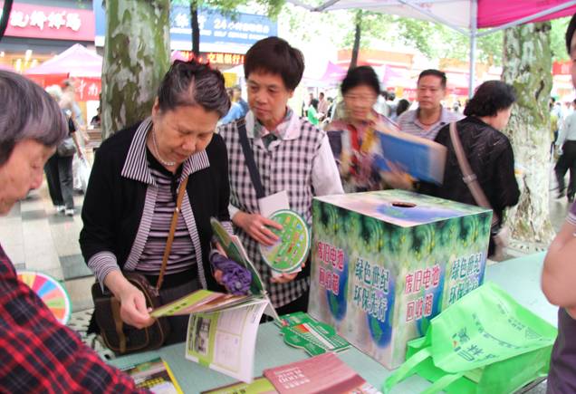 ??? 众多企事业单位参与了此次活动,活动现场人头攒动、热闹非凡。我公司于活动现场举办了废旧电池回收活动,并现场进行了环保知识的宣讲与普及,宣传资料的发放等,充分展示了格林美公司的“资源有限,循环无限”的环保理念。活动得到了广大市民的积极响应,纷纷于我公司展位前咨询、了解相关信息,现场工作人员也耐心的向不断前来咨询的市民进行讲解。