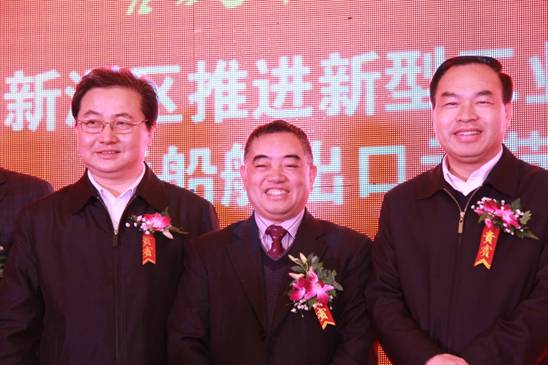 图4. 武汉市委副书记、市人民政府市长唐良智、新洲区委书记王世益、格林美董事长许开华在签约仪式合影