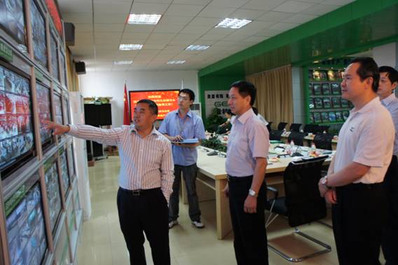 图1. 董事许开华教授向孔泾源司长(左二)、连启华副司长(前右一)介绍格林美视频监控系统