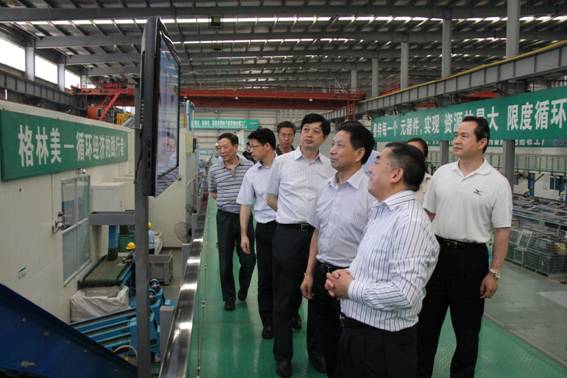 ??? 2012年5月31日下午,国家发改委体改司孔泾源司长、连启华副司长、试点处彭绍宗处长和董文调研员,以及宏观处刑晓东副调研员,在湖北省发改委肖安民副主任、战略规划办王培锦副主任等的陪同下莅临格林美武汉循环产业园,考察格林美的循环经济发展情况,陪同人员还有武汉市发改委程致舜巡视员、两型办童赛雄副主任和新洲区发改委、阳逻经济开发区相关负责同志。董事长许开华教授进行了热情接待和详细汇报,并陪同参观了视频监控系统、电子废弃物仓库、电子废弃物拆解分厂、塑木型材分厂和拟建的废灯管回收利用车间。