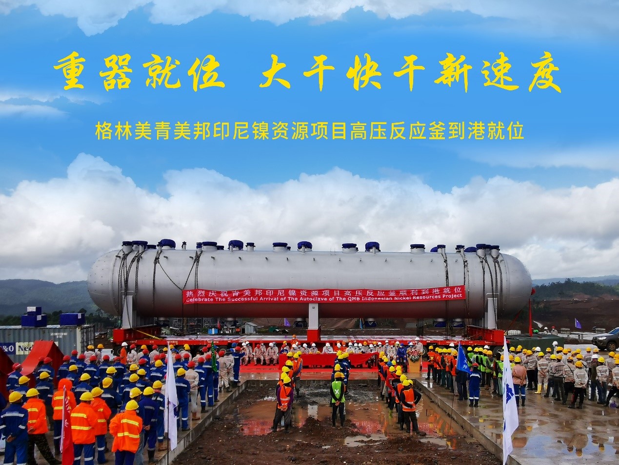 核心设备高压釜到港就位安装,标志青美邦印尼镍资源项目进入实质性设备安装阶段,拉开了项目建设进入快速道的序幕,将有效保障“2021年内完成项目各项建设与2022年初投入运行”的建设目标。