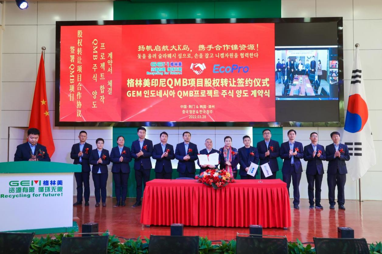2022年3月28日,为应对世界行业竞争格局,把握未来行业发展主动权,强化镍资源与下游市场的紧密合作,来自中韩两国的世界新能源材料供应链的头部企业——格林美(GEM)与ECOPRO云签署了印尼青美邦(QMB)镍资源项目股权合作协议与2023-2026年NCA&NCM高镍三元前驱体材料供应MOU。根据股权转让协议与NCA&NCM高镍三元前驱体材料供应MOU,格林美向ECOPRO转让9%的QMB股权,ECOPRO于2023-2026年向格林美采购70万吨高镍前驱体材料,达到ECOPRO对镍资源的战略获取与格林美对前驱体市场的战略锁定的战略目标,实现合作双方战略利益最大化。该协议旨在深化双方战略合作,聚焦双方核心优势,全面打造“镍资源开发—前驱体制造—三元材料制造”的供应链价值体系,携手构建全球竞争力的镍资源保障体系与前驱体材料市场保障体系,满足双方在供应链的战略需要,实现合作双方战略利益最大化。签约仪式分别在格林美荆门园区与韩国清州举行,ECOPRO会长李东彩先生,格林美集团董事长许开华教授,董事、联合实际控制人王敏女士等出席本次签约仪式。