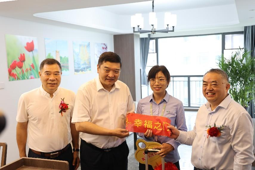 谢小平部长、孙定军主任、胡天国董事长、周波董事为首批入住的格林美高级人才发放“金钥匙”