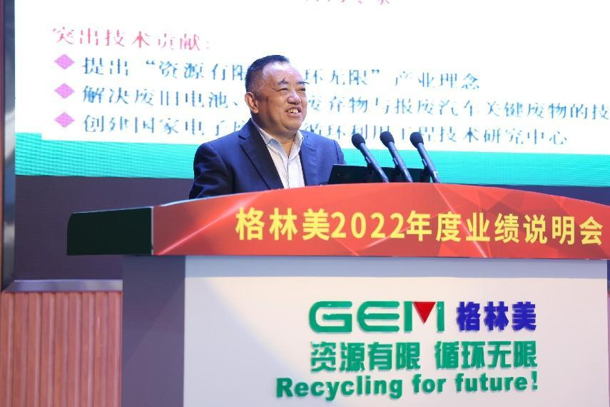 会上,许开华董事长在致辞中向全球投资者与社会各界致敬,衷心感谢全球投资者与社会各界对格林美绿色循环产业的大力支持!许开华董事长以“业绩、出海、通道”三个关键词描述格林美踏浪出海、大开通道、经营业绩创历史新高的2022年靓丽答卷。他指出,2022年,格林美产能大幅释放,经营业绩逆势创历史新高,实现营业收入293.92亿元,同比增长52.28%,实现净利润12.96亿元,同比增长40.4%;资本出海,成功登陆瑞交所,绿色产业被全球资本市场认同,让全球资本为公司绿色产业布局插上翅膀;产业出海,印尼镍资源项目一期建成投产,成为中国印尼合作的亮点工程;大开通道,突围内卷,昂首通往欧美新市场。许开华董事长还总结2022年格林美五大亮点:动力电池回收规模化,立起新的增长极;镍钴回收扩容增量,夯实镍钴原料体系底盘;全球合作,核心市场与核心供应定义未来5年发展;创新倍增,攻关多个最新一代产品技术,昂首迈入行业技术领先区;垂范绿色,ESG价值闪亮世界,全年各项工作亮点纷呈。