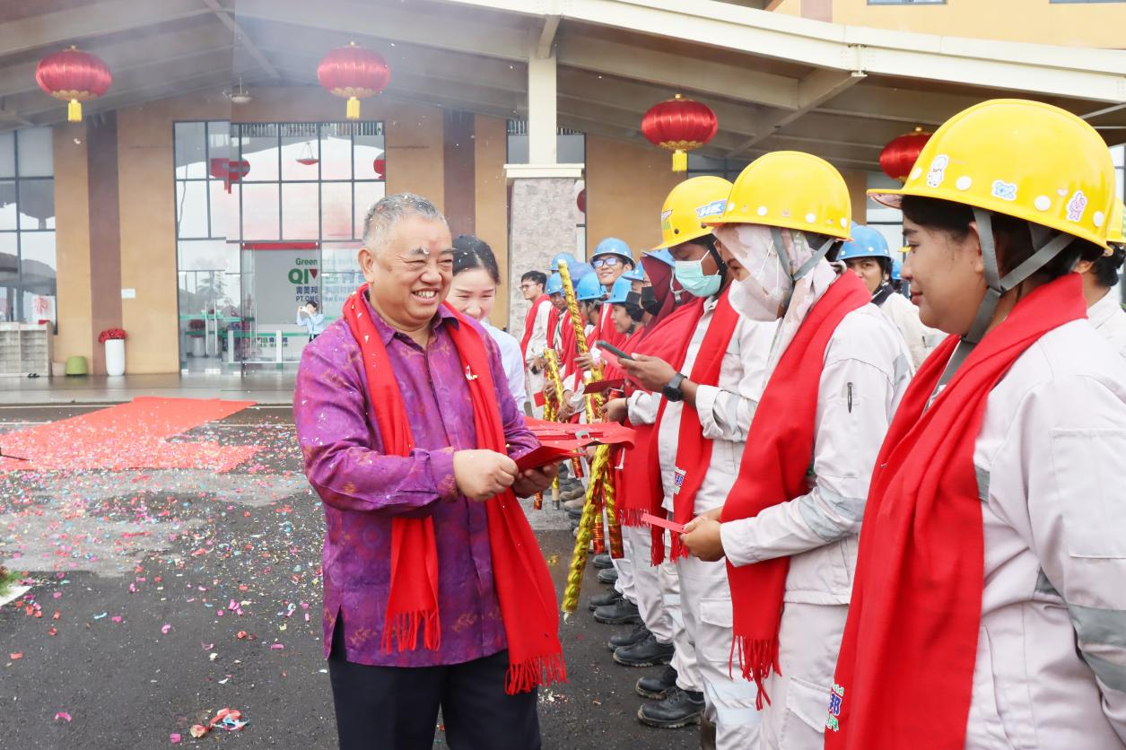 格林美印尼青美邦园区:蛟龙出海腾云起,文化融合启新程!龙腾虎跃加油干,鱼跃龙门展宏图!