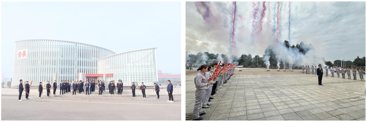 上午8时48分,各园区举行开工仪式,鞭炮齐鸣、礼花冲天,恭贺开工大吉、龙行大运,在喜庆和欢腾的气氛中,奋发向上的格林美人以崭新的精神面貌迎接2024年,吹响新春“龙腾虎跃”的号角。