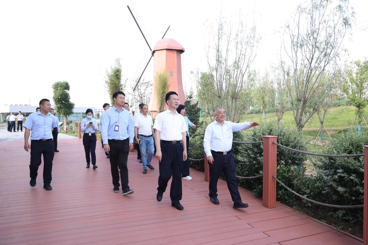 图2 曹松主任(前排右二)一行参观格林美新能源材料循环经济低碳产业园双碳湖