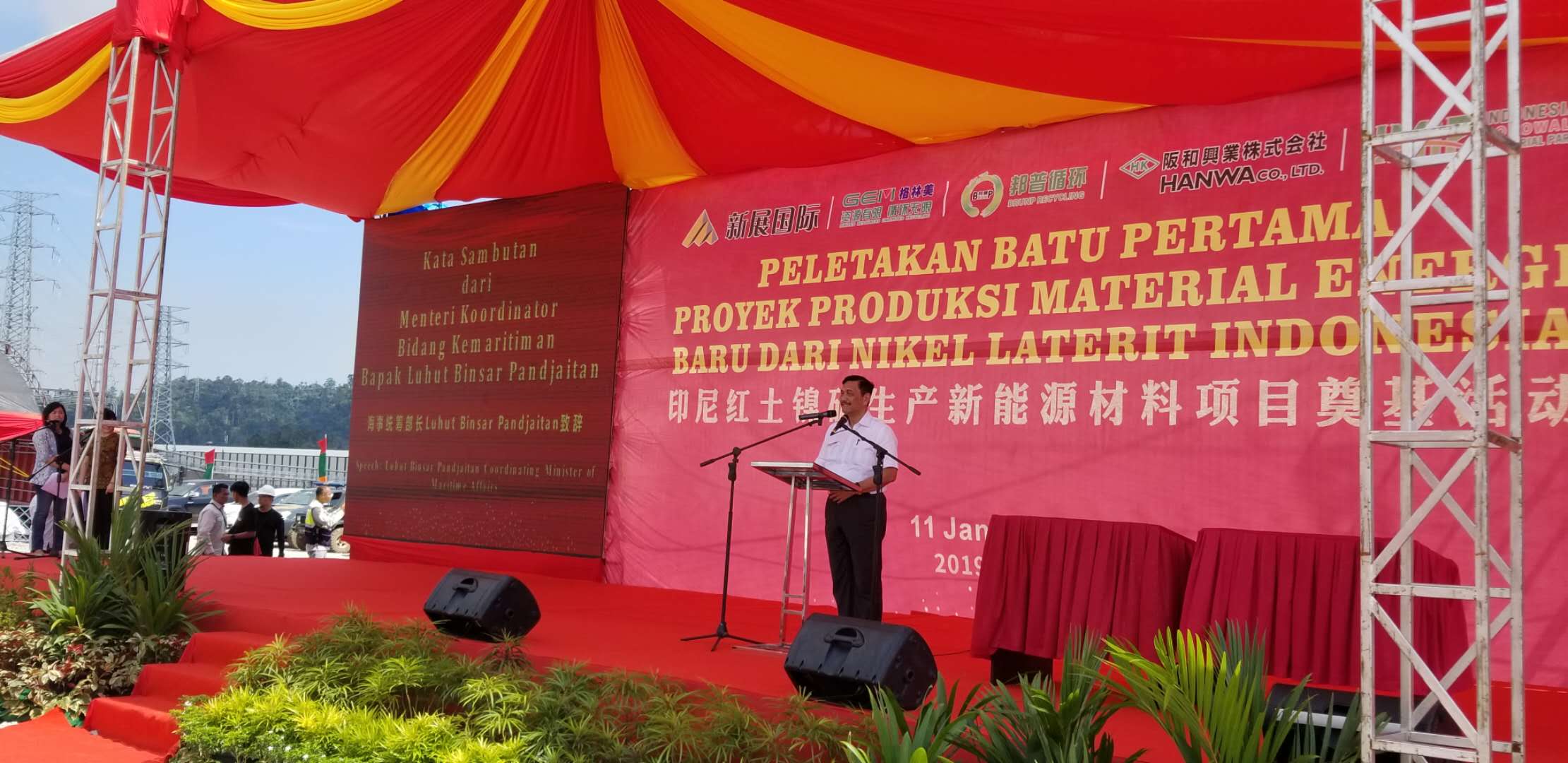 2019年1月11日上午,由格林美、青山实业、邦普、IMIP、阪和兴业共同投资、合作成立的青美邦新能源材料公司奠基仪式,在印度尼西亚中苏拉威西省摩洛哇丽县印度尼西亚经贸合作区青山园区盛大举行,印尼海事统筹部鲁胡特部长...