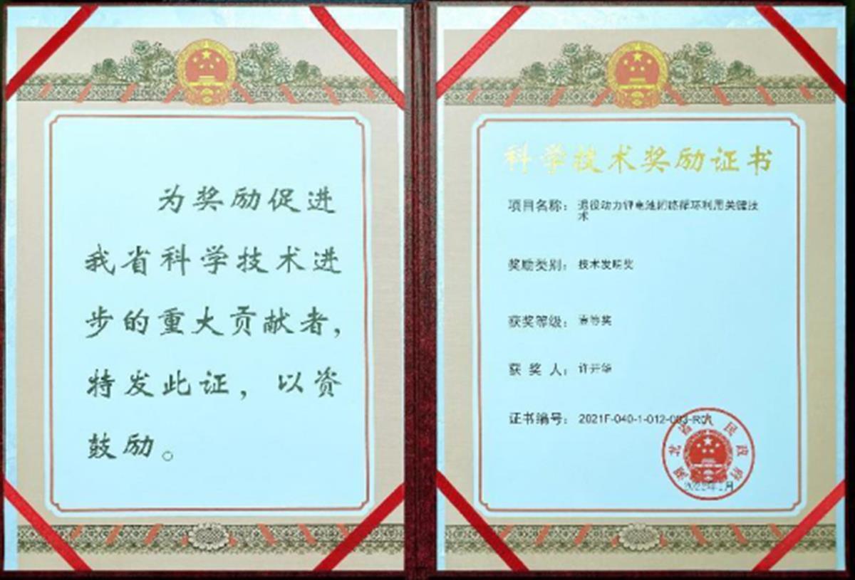 格林美“退役动力锂电池闭路循环利用关键技术项目”荣获“湖北省技术发明奖一等奖”