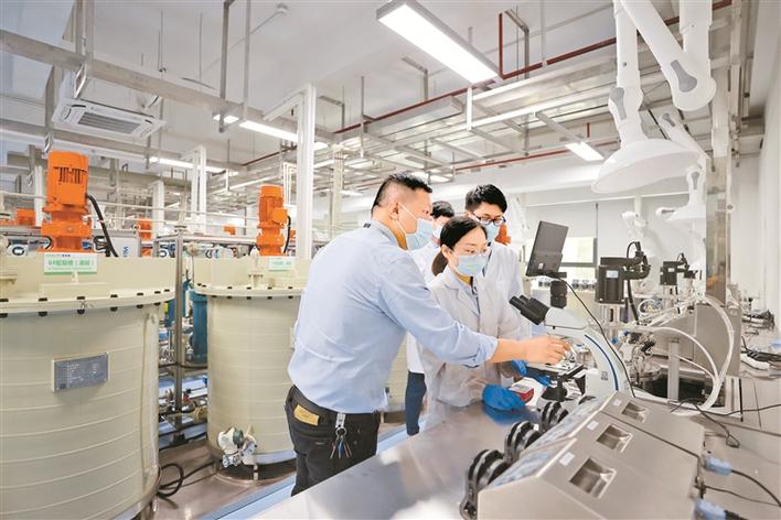桃花源科技创新生态园内,专家在超高镍动力芯材料实验室开发高镍三元前驱体。深圳特区报记者 刘钢 摄