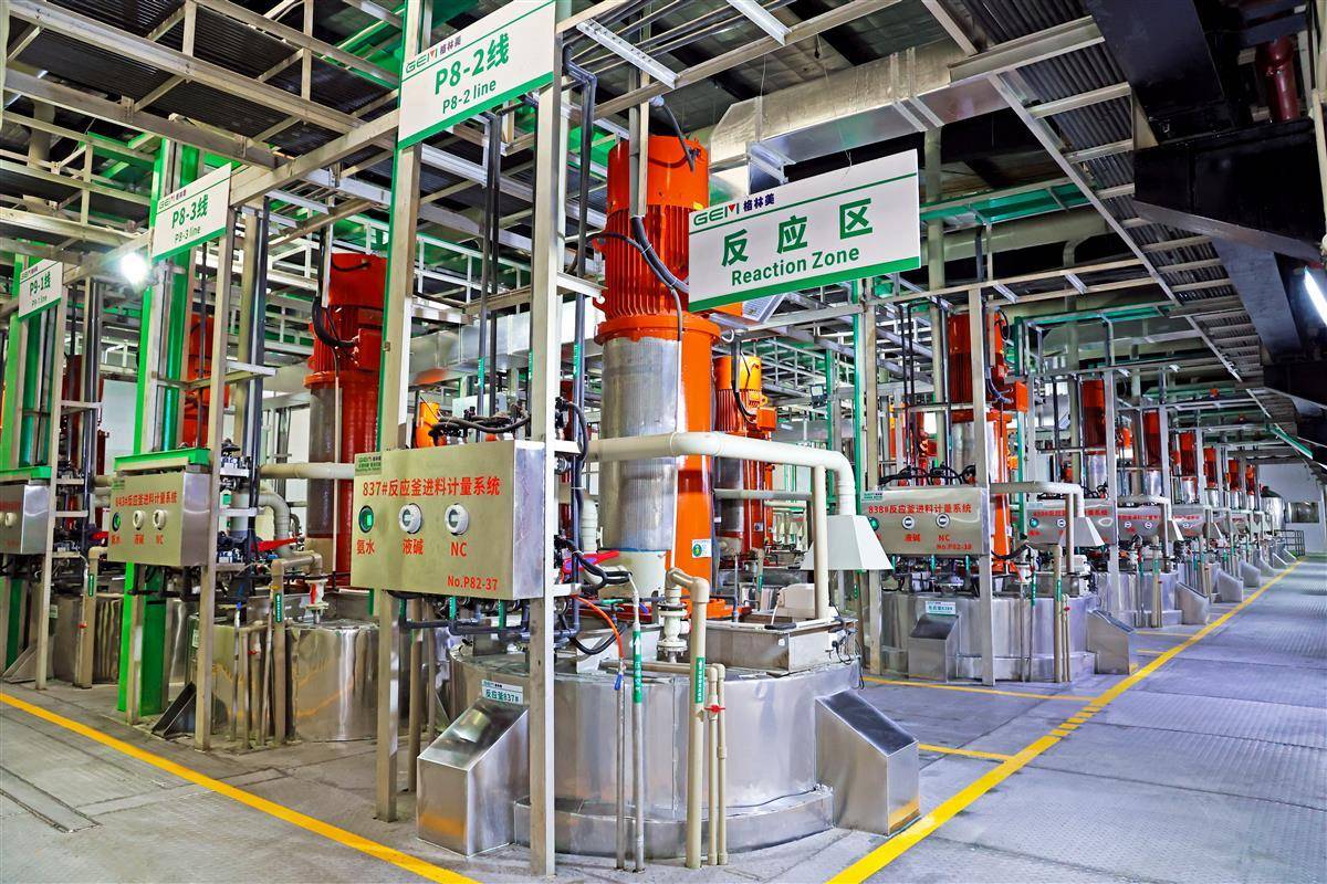 格林美超高镍三元前驱体制造中心生产车间内,一系列巨型反应釜全天候运转。(湖北日报全媒记者张诗秋 摄)