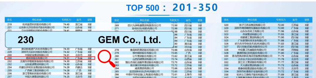 9月9日,华发七弦琴国家知识产权运营公共服务平台正式发布《2025年中国企业专利实力500强榜单》。格林美凭借在知识产权创造、运用和管理等方面的综合实力,位列全国第230位,较去年大幅提升14个名次,展现出强劲的创新成长性。