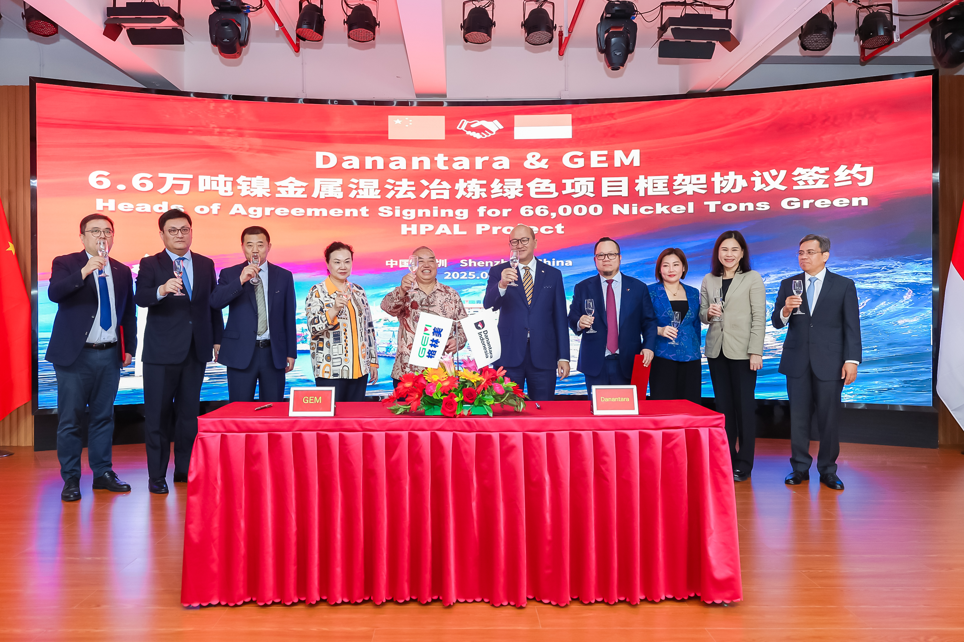 图为印尼国家主权财富基金Danantara与格林美6.6万吨镍金属湿法冶炼绿色项目框架协议签约现场(受访企业供图)