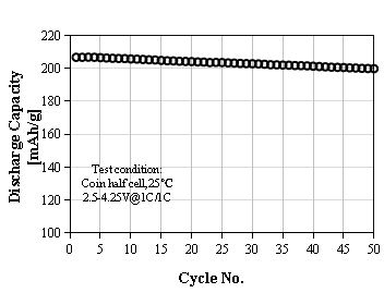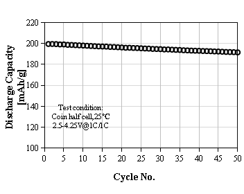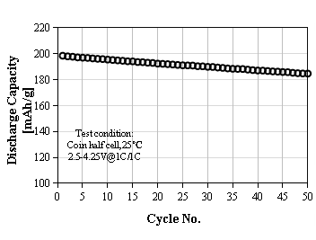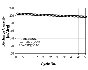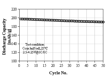 L-8950产品应用:用于圆柱或软包电池,4.20 V下测试,0.2C放电比容量为203.5mAh/g,循环性能:1C/1C,1000周≥80%,可用于电动汽车或电动工具。