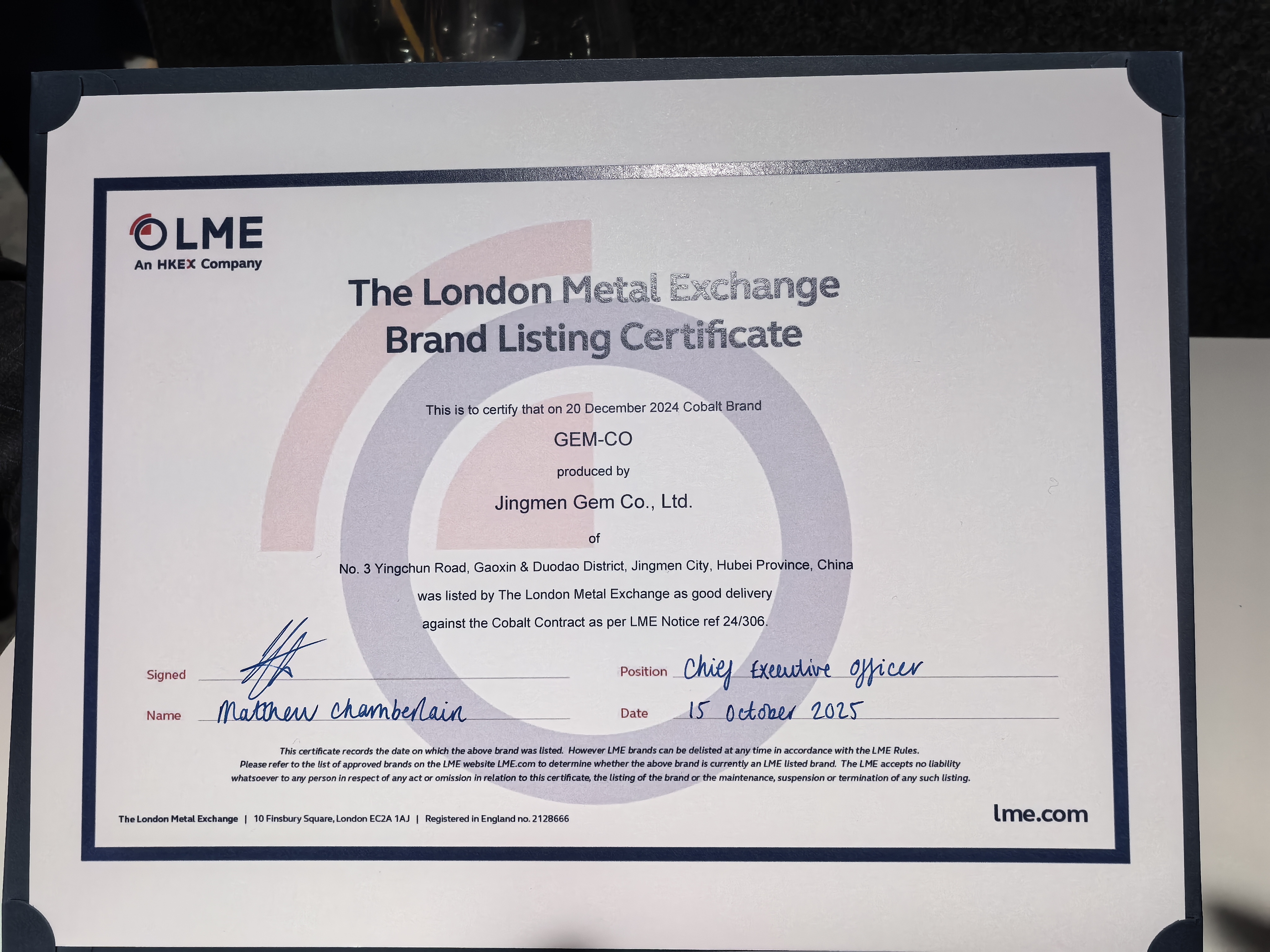 GEM-CO Cobalt Product Is Listed as “Good Delivery” by LME As autumn brings auspicious news, GEM’s cobalt steps into a new realm. Recently, the GEM-CO branded cobalt product of GEM Co., L...