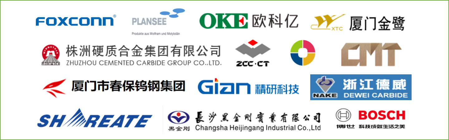 TChina Tungsten High-tech, ZCC-CT, Zhuzhou Cemented Carbide Group,, Foxconn, Xiamen Tungsten, Heijingang, CBcarbide, OKE, Shareate and other mainstream customers.